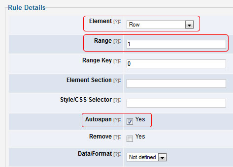 Since both cases are valid, we have used the rule priority property in order to make row merging (row autospan) to be executed first or vice versa.