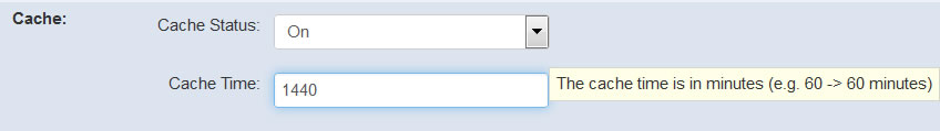 - The cache time is in minutes, e.g. the value 1440 means 1440 minutes or 24 hours.