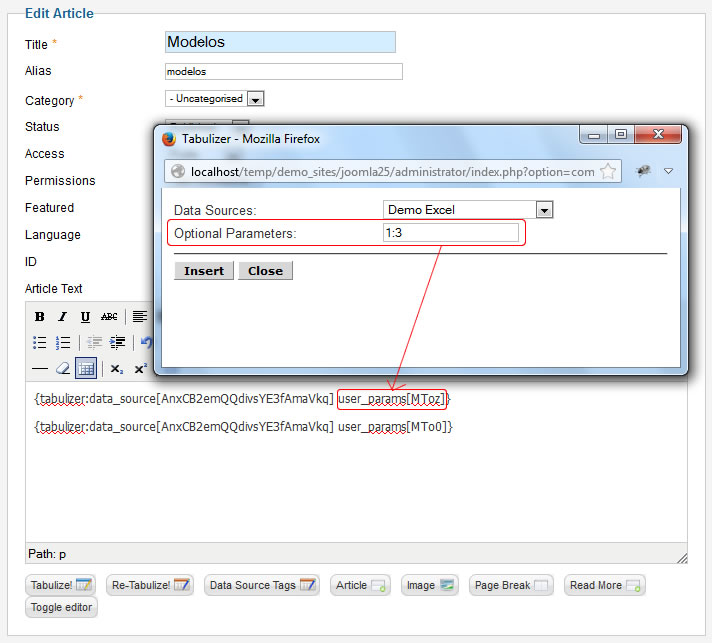 The 1:3 value means user_param_1_editor = 3. So 1 is the index of the user variable, while the 3 is it's value. Notice also that the inserted value is MToz which is the base64 encoded value of 1:3. In the optional parameters input box you can specify the values for more than one user defined variables using the semicolon (;) as separator. For instance, 1:3;2:all;3:4.1 will assign user_param_1_editor = 3, user_param_2_editor = all, user_param_3_editor = 4.1.