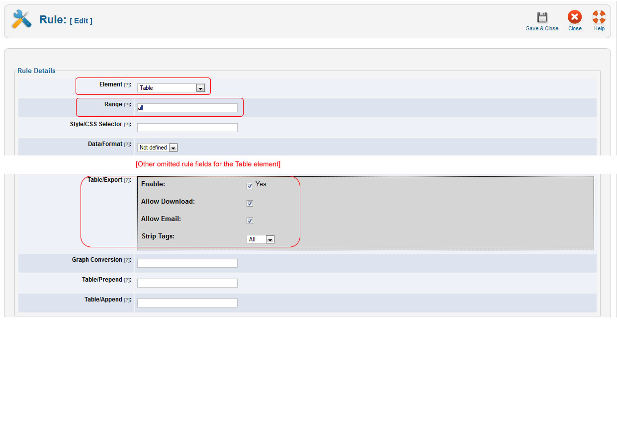 Tabulizer allows you to make a table downloadable with a single rule. This is very useful in cases where you want the users/visitors to be able to download the table data as CSV or Excel file. Using the Export Table rule, which is available for the table element, you can specify if the site use can download or email the table data as a file.