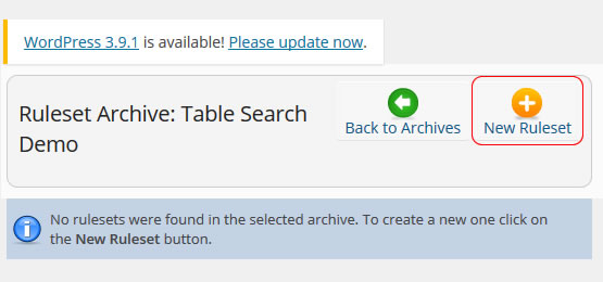 - Login in the backend of your Wordpress site and go to Tabulizer plugin. Select the Ruleset Archives submenu and click on the New Archive toolbar button.
